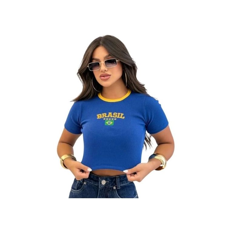 Blusinha Cropped Canelada Feminina Brasil Torcida Copa