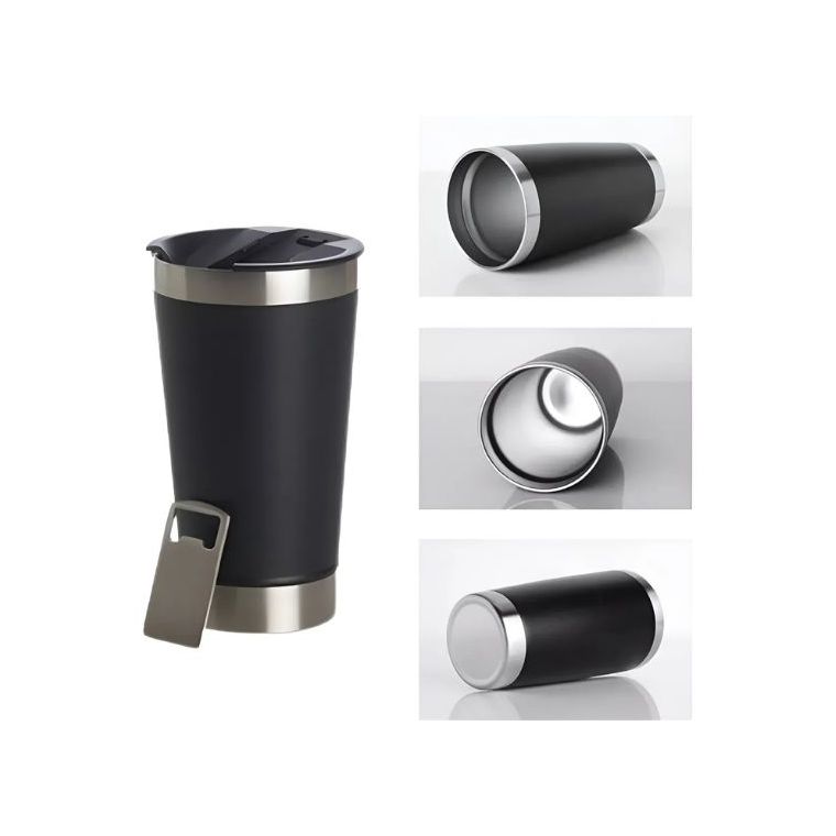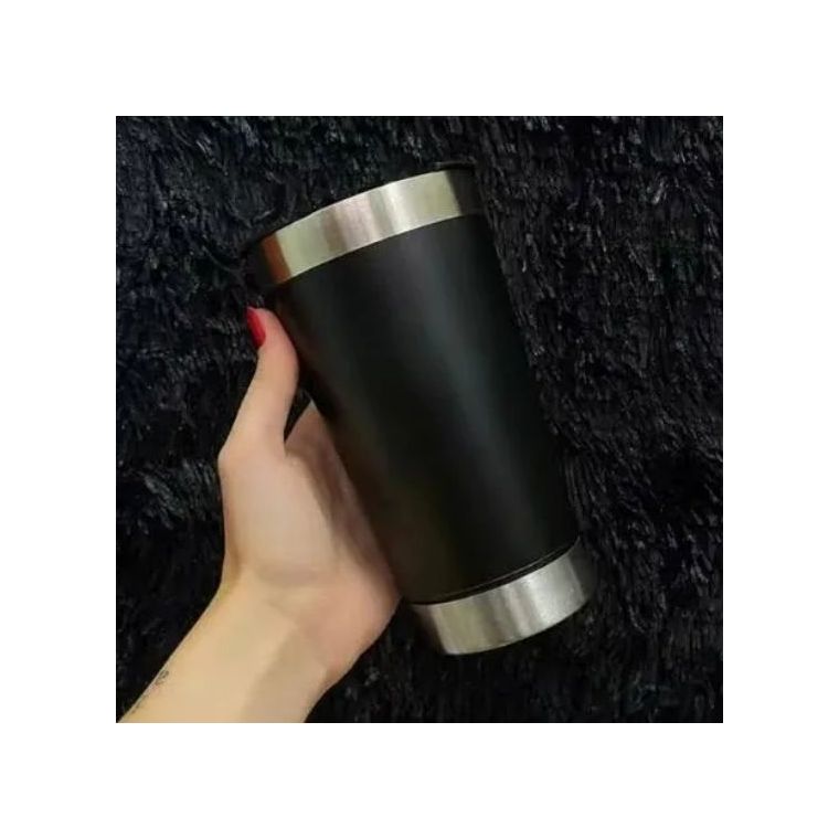 Copo Térmico 473 Ml Aço Inox Parede Dupla Com Tampa Cor Preto