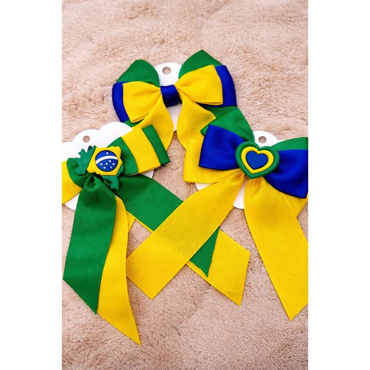 Kit 3 Laços De Cabelo Infantil Bico De Pato Luxo Brasil Copa 2026