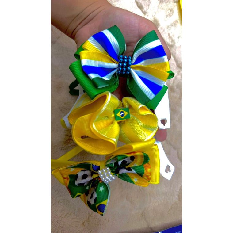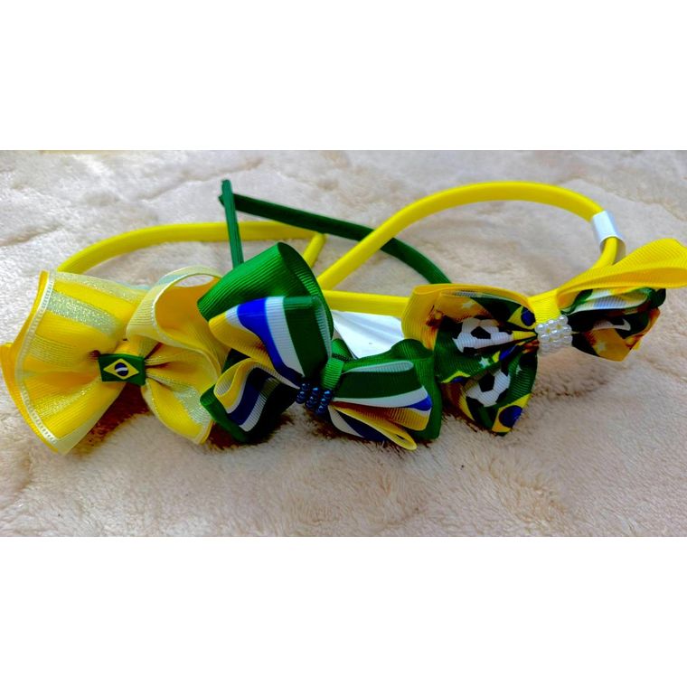 Kit de 3 Tiara Arquinho Copa do Mundo Jogo Futebol Bandeira Brasil