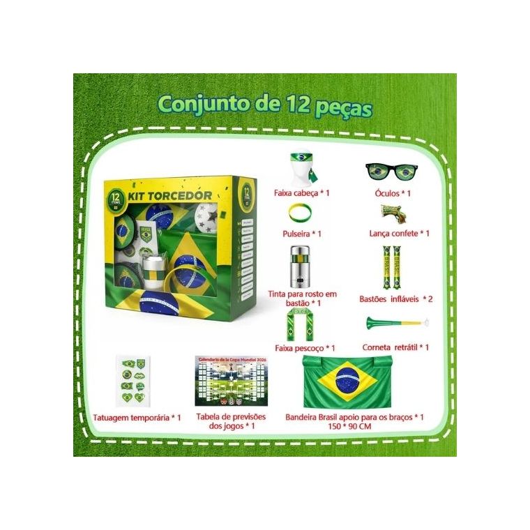 Kit Torcedor Brasil Copa Do Mundo 2026 - 12 Peças